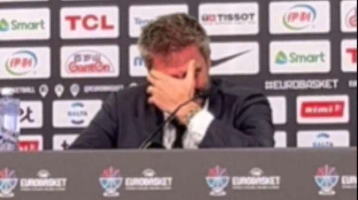 賽后發(fā)布會(huì)現(xiàn)場(chǎng),意大利主教練波澤科宣布辭職后情緒失控,含淚離開(kāi)了發(fā)布會(huì)現(xiàn)場(chǎng)。