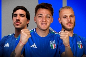 意大利國家隊官方社媒發(fā)布為此役制作的海報,雷特吉、托納利以及迪馬爾科出鏡。