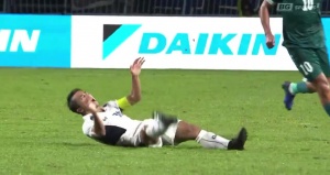 全場(chǎng)比賽補(bǔ)時(shí)階段,伊拉克1-0領(lǐng)先泰國(guó)。此前有“泰國(guó)梅西”之稱(chēng)的泰國(guó)隊(duì)球員頌克拉辛中圈帶球突破,被身后的伊拉克十號(hào)莫哈納德-阿里一腳踢在懸空的左腿膝蓋處,頌克拉辛當(dāng)場(chǎng)痛苦倒地并翻滾數(shù)圈!