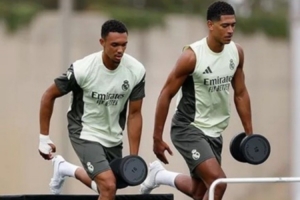 在皇馬曬出的訓(xùn)練照中,貝林厄姆與阿諾德同框,兩人一同進行訓(xùn)練。
