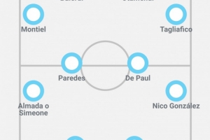 附《奧萊報(bào)》預(yù)測(cè)阿根廷隊(duì)首發(fā):大馬丁;蒙鐵爾、巴雷爾迪、奧塔門迪、塔利亞菲科;阿爾馬達(dá)/小西蒙尼、帕雷德斯、德保羅、尼科-岡薩雷斯;阿爾馬達(dá)/阿爾瓦雷斯、勞塔羅