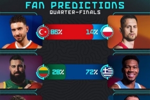 歐錦賽官方發(fā)布1/4決賽球迷預(yù)測結(jié)果,具體如下:
