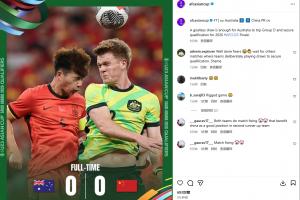 體育資訊09月09日訊 U22國足0-0戰(zhàn)平澳大利亞,賽后亞足聯(lián)發(fā)文報(bào)告戰(zhàn)果。