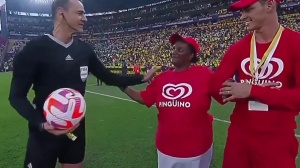 世預(yù)賽南美區(qū)厄瓜多爾1-0阿根廷,賽前凱塞多媽媽為比賽送球