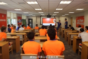 7月9日下午,球隊(duì)在訓(xùn)練開始前,泰山足校西班牙籍青訓(xùn)總監(jiān)埃里克在會議室對球隊(duì)前一天的訓(xùn)練進(jìn)行復(fù)盤總結(jié),并與全體隊(duì)員分享了訓(xùn)練中的理念、要求和方法,會后到場地配合教練組一起共同完成訓(xùn)練任務(wù)。