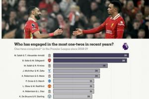 ?? 薩拉赫 & 菲爾米諾(利物浦)—— 28次