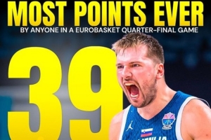 根據(jù)數(shù)據(jù)統(tǒng)計,東契奇此役39分,這是歐錦賽1/4決賽歷史單個球員的得分紀錄。
