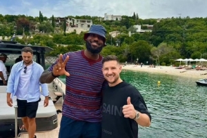 本周二晚上,詹姆斯和友人在科孚島北部的一家餐廳用餐,期間與多位球迷合影。隨后,該媒體還曬出一段詹姆斯一行人離開科孚島回到游艇上的視頻。