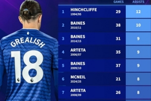 開局3場(chǎng)4助!格拉利什有望沖擊埃弗頓隊(duì)史英超單賽季12次助攻紀(jì)錄