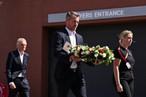 體育資訊7月9日訊 今日,利物浦俱樂(lè)部首席執(zhí)行官比利-霍根攜高管團(tuán)隊(duì)成員在安菲爾德球場(chǎng)向若塔兄弟致以深切敬意,并獻(xiàn)上鮮花表達(dá)哀悼之情。