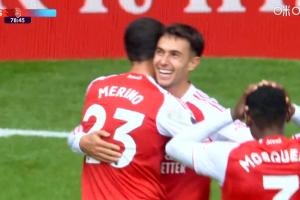 體育資訊09月13日訊 英超第4輪,阿森納vs諾丁漢森林。比賽第79分鐘,蘇維門迪頭球破門,本場雙響!阿森納3-0領先。