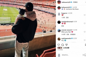 本場比賽因傷缺戰(zhàn)的哈弗茨也抱著自己的孩子來到現(xiàn)場觀戰(zhàn),球員在個人社媒曬照寫道:“??????就像這樣的時刻!”
