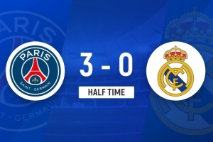 上半場補(bǔ)時(shí)3分鐘。半場戰(zhàn)罷,巴黎3-0皇馬。