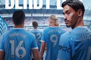 曼城官推也曬出海報(bào)為德比大戰(zhàn)預(yù)熱,海報(bào)中是賴因德斯、哈蘭德、羅德里以及劉易斯即將步入球場(chǎng)的背影。