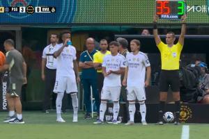體育資訊07月10日訊 世俱杯半決賽,巴黎對(duì)陣皇馬。64分鐘,皇馬連換三人,莫德里奇、迪亞斯、米利唐出場(chǎng),貝林厄姆、維尼修斯、阿森西奧被換下。