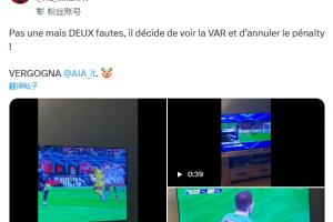 米蘭球迷社媒發(fā)文怒斥判罰:“不是一次而是兩次犯規(guī),他決定查看VAR并取消點(diǎn)球!恥辱@AIA(意大利裁判協(xié)會(huì))???!比R奧社媒轉(zhuǎn)發(fā)了該球迷評(píng)論。