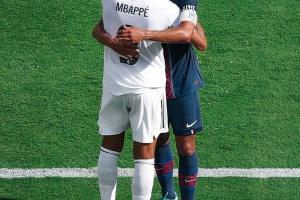 賽后巴黎隊長馬爾基尼奧斯也與前巴黎隊友姆巴佩緊緊相擁致意。
