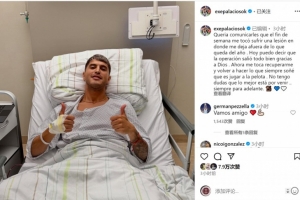 帕拉西奧斯社媒曬出自己躺在病床上豎起大拇指的照片,并寫道:“我想通知大家,上周末我不幸受傷,這將讓我缺席今年剩余的比賽?!?/p>