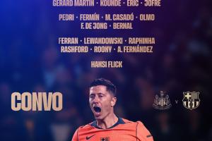 體育資訊09月17日訊 北京時(shí)間9月19日03:00,歐冠首輪,巴薩客場(chǎng)將對(duì)陣紐卡。巴薩公布比賽名單,亞馬爾因傷缺席!萊萬(wàn)領(lǐng)銜,德容、拉什福德在列。