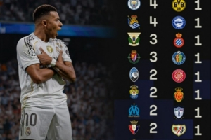 體育資訊9月17日訊 在本輪歐冠皇馬2-1擊敗馬賽的比賽中,姆巴佩梅開二度,達(dá)成皇馬生涯50球里程碑。
