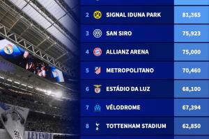 以下為新賽季歐冠球場容量最大top10: