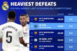 體育資訊7月10日訊 巴黎在世俱杯半決賽4-0血洗皇馬,轉(zhuǎn)會市場也列出了皇馬近10年來的慘敗紀(jì)錄,巴薩是銀河戰(zhàn)艦的最大苦主。
