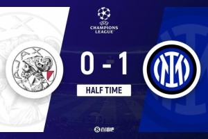 上半場傷停補(bǔ)時(shí)3分鐘,半場結(jié)束,國米暫1-0阿賈克斯。