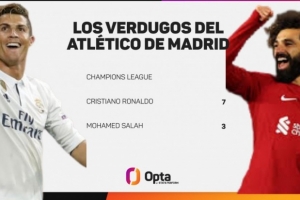 在歐冠賽場上,薩拉赫7次面對馬競打進3球。在這項賽事中,薩拉赫面對床單軍團的進球數量僅次于C羅(12場7球)。