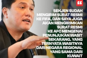 印尼足協(xié)主席托希爾表示,同是來(lái)自西亞的科威特裁判可能會(huì)影響比賽吹罰的公正性,在這一輪世預(yù)賽亞洲區(qū)比賽中,印尼是唯一一支非中東地區(qū)的球隊(duì),其他五支球隊(duì)分別是沙特、伊拉克、卡塔爾、阿曼以及阿聯(lián)酋。