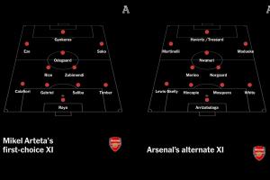 總身價13.3億!TA列阿森納2套首發(fā)11人,馬杜埃凱小馬丁領(lǐng)銜第2套