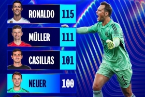 目前,諾伊爾在歐冠已經(jīng)收獲100場勝利,成為第四名做到這一點的球員,在他身前是C羅(115勝)、托馬斯-穆勒(111勝)和卡西利亞斯(101勝)。