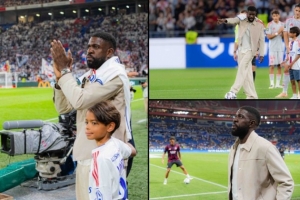 今天,里昂為烏姆蒂蒂舉行了一場簡短但感人的致敬儀式:俱樂部向他贈送了印有其名字的球衣,現(xiàn)場球迷則以熱烈的掌聲表達(dá)敬意。隨后,烏姆蒂蒂在賽前進(jìn)行了開球儀式。