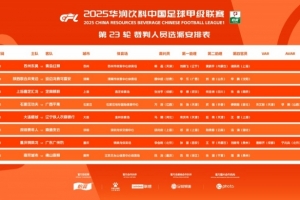 體育資訊9月20日訊 中甲聯(lián)賽官方公布聯(lián)賽第23輪裁判選派,唐順齊將擔(dān)任重慶銅梁龍VS廣東廣州豹的VAR裁判。