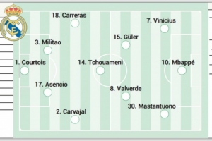 體育資訊9月20日訊 《阿斯報(bào)》發(fā)文,預(yù)測了皇馬的首發(fā)陣容。