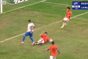 體育資訊09月20日訊 泰山vs海牛上半場最后階段,泰山傳中,劉軍帥倒地攔截時手球。