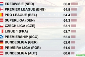 體育資訊9月20日訊 CIES盤點(diǎn)各聯(lián)賽球員平均高強(qiáng)度跑動(dòng)數(shù)據(jù),荷甲第一。