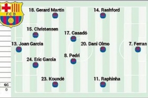 體育資訊9月21日訊 西甲第5輪比賽,巴薩將在主場對陣赫塔費(fèi),西班牙媒體《阿斯報(bào)》預(yù)測了此役巴薩的首發(fā)陣容。