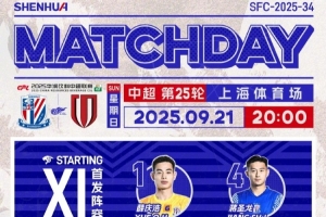 2025華潤(rùn)飲料中超聯(lián)賽第25輪 上海申花 vs 成都蓉城 首發(fā)名單 ???