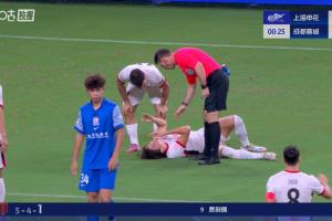 體育資訊09月21日訊 中超第25輪,上海申花vs成都蓉城。比賽開場(chǎng)僅20秒,元敏誠與劉誠宇邊路對(duì)抗后倒地不起,隨后劉誠宇被主裁出示黃牌。