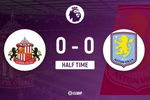 傷停補時3分鐘。上半場比賽結(jié)束,桑德蘭0-0阿斯頓維拉。
