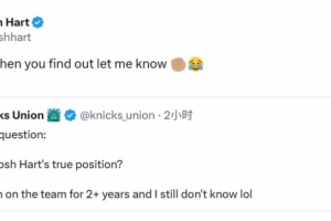 體育資訊9月21日訊 尼克斯球員哈特在社媒轉(zhuǎn)發(fā)了一則動態(tài),原文寫的是:“看了尼克斯兩個賽季球了,但依舊沒搞懂,哈特真正打的位置是什么的?”