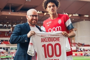 體育資訊9月21日訊 法甲第5輪,摩納哥主場對陣梅斯。賽前,阿克利烏舍領(lǐng)取了百場紀(jì)念球衣。