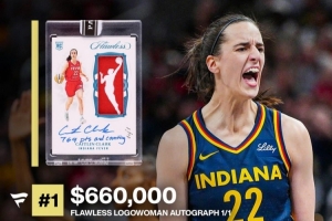 而今年兩筆最大交易分別是1of1的Logo Woman球星卡,成交價高達(dá)66萬美元,創(chuàng)下了女性體育卡片史上最高成交紀(jì)錄,而她相關(guān)的球星卡成交價TOP5都超過了31萬美元。