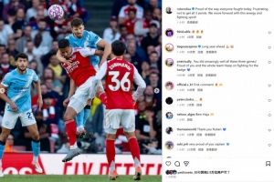 曼城球員魯本-迪亞斯也在社媒曬出本場(chǎng)照片,配文寫道:“為今天全隊(duì)的拼搏精神感到驕傲,很失望沒能拿到3分,我們帶著能量與斗爭(zhēng)精神繼續(xù)前進(jìn)!”