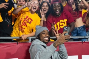 體育資訊9月22日訊 南加大籃球隊(duì)社媒更新動(dòng)態(tài),曬出了校友、NBA球員德羅贊回到母校觀看校橄欖球隊(duì)的比賽照片,德羅贊在現(xiàn)場(chǎng)也是熱情的和學(xué)弟、學(xué)妹們互動(dòng)。