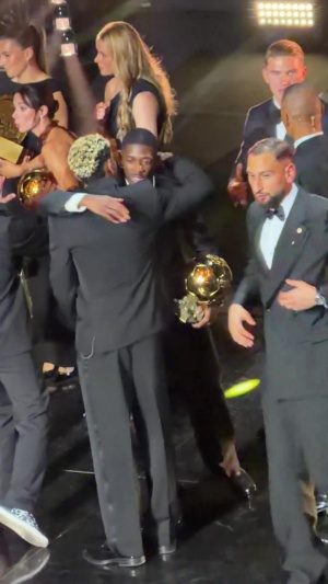 體育資訊09月23日訊 2025年金球獎,登貝萊加冕榮譽?,F(xiàn)場儀式結(jié)束后,亞馬爾等待在一旁,祝賀并擁抱了登貝萊。