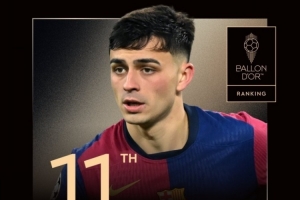 體育資訊9月23日訊 2025年金球獎(jiǎng)排名出爐,巴薩中場佩德里排在第11位。