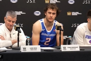 德根哈特22歲,身高6尺7,體重235磅。在代表博伊西州立大學(xué)出戰(zhàn)的138場比賽中,場均能得到14.8分5.3籃板1.4助攻1.1次搶斷,三項命中率分別為52%、35%、78%。