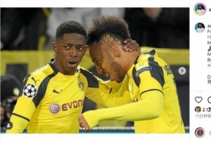 奧巴梅揚(yáng)社媒曬出與登貝萊效力多特、巴薩時(shí)期的多張合照,配文:“兄弟,我有太多照片要發(fā)了!感謝你成為現(xiàn)在的自己????實(shí)至名歸??????也恭喜你,穆斯 (登貝萊好友)????抱歉發(fā)了最后一張照片????”