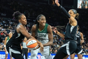 作為聯(lián)盟中的傳統(tǒng)強隊,拉斯維加斯王牌在首輪遭遇了西雅圖風暴的頑強抵抗。系列賽首戰(zhàn),王牌展現(xiàn)出強大的統(tǒng)治力,以102-77的懸殊比分大勝風暴,阿賈-威爾遜全場砍下29分8籃板,杰基-楊也有18分7助攻入賬,王牌憑借出色的進攻效率和強硬的防守,早早確立了領先優(yōu)勢。?